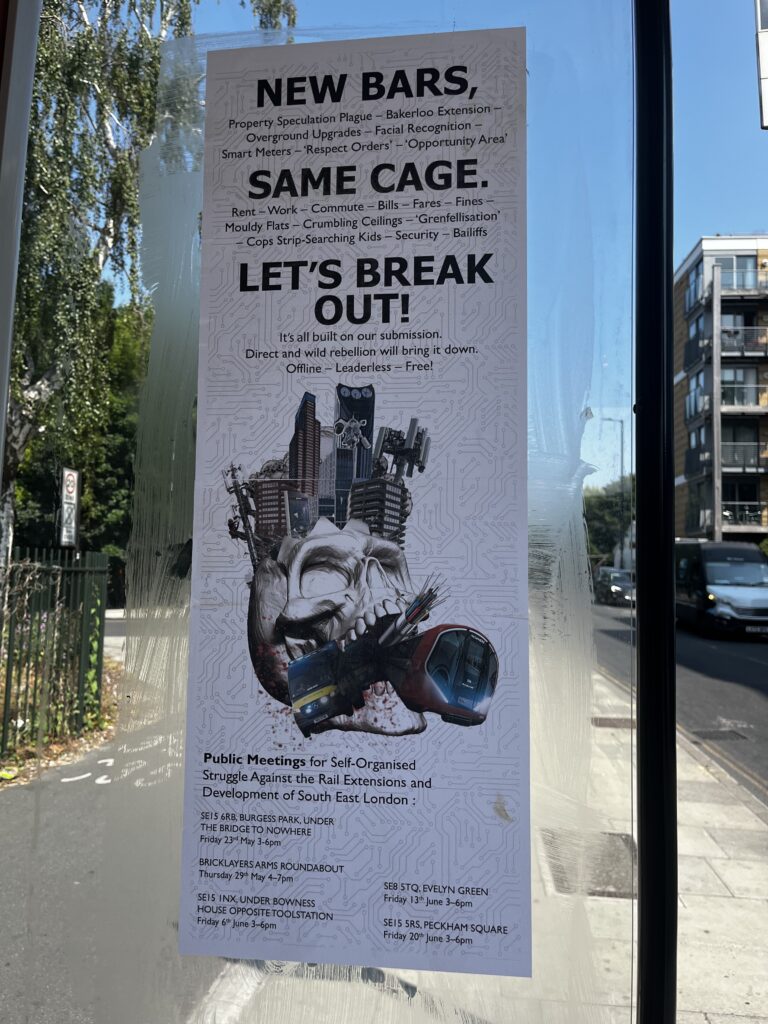 The striking visual design with more than a whiff of death and violence dramatically thrown in (look closely and you’ll see blood spatters) certainly helped. The despair and palpable anger it conveyed at the deep injustices people are experiencing – the dangerous housing, the crippling cost of living, the empty daily grind – that made it stand out too. As did its sense of the dehumanising powerlessness of living in a world that changes around you, without your input and without any benefits coming your way. It was the startling combination of complaints, where smart meters, the proposed Bakerloo line extension and bailiffs are all experienced as part of the same problem. It was also the sneering tone towards Respect Orders and Opportunity Areas, casting them as oppressive, jargonistic and exclusionary initiatives. It was the feeling it conveyed that no one with power is on your side. And the deep distrust it displayed towards…well everyone. TfL, the council, the government, big business, the Home Office, the Mayor of London, the police, landlords.