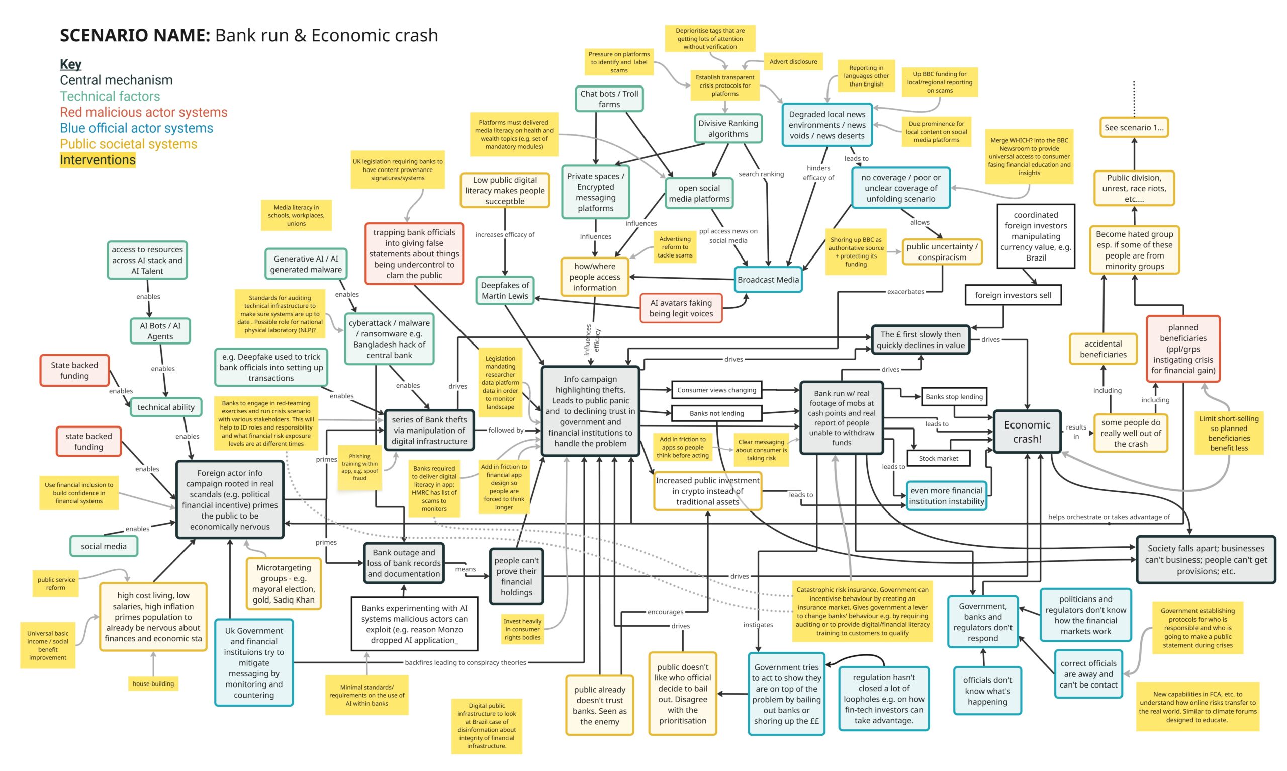 Crisis scenario map: Bank run & economic crash